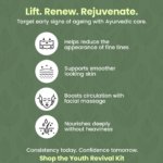 The Ayurvedic Youth Revival Kit is a thoughtfully curated trio designed to support smoother-looking skin, reduce the appearance of fine lines, and restore natural glow using plant-powered formulations and facial massage therapy.